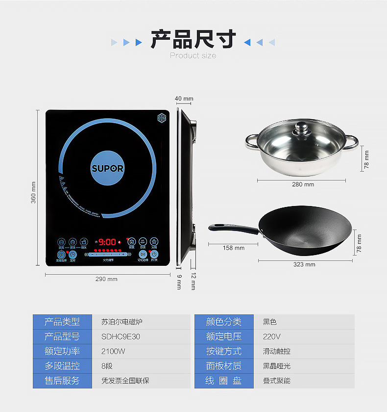 | 商品名称 | SUPOR/苏泊尔 SDHCB9E30-210T 电磁炉 触摸屏 火锅 电磁炉家用 |