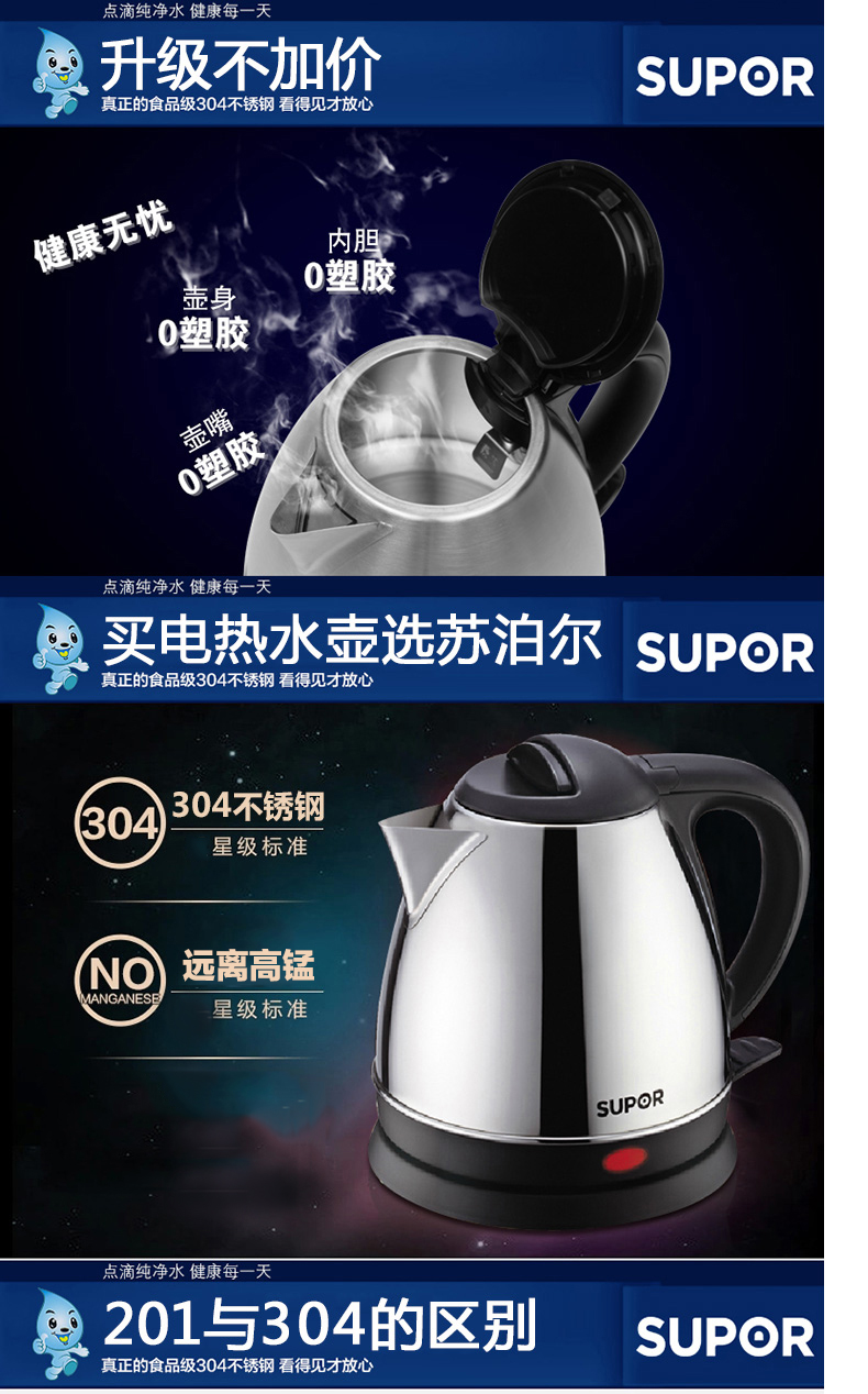 Supor/苏泊尔 SWF12EP-150家用电热水壶304不锈钢烧水壶自动断电