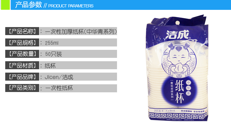 洁成一次性杯子加厚纸杯(中华青青花瓷系列)50只装