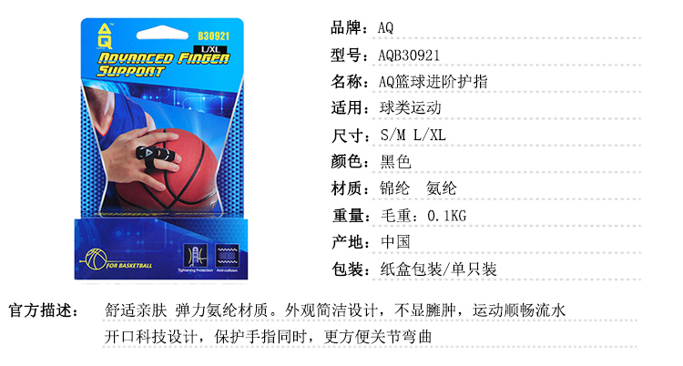 AQ篮球护指套B30921 排球护手指套绷带男儿童运动护具 进阶加压款 黑色 L/XL