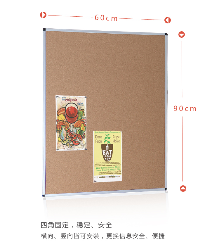 AUCS 90*60cm 软木板留言板照片墙 办公家用图钉板宣传板挂式 44532
