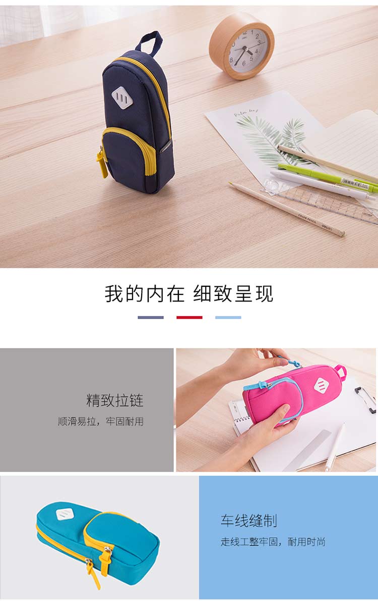 得力(deli)大容量笔袋创意书包款铅笔收纳袋/吸铁站立式 深海蓝66759