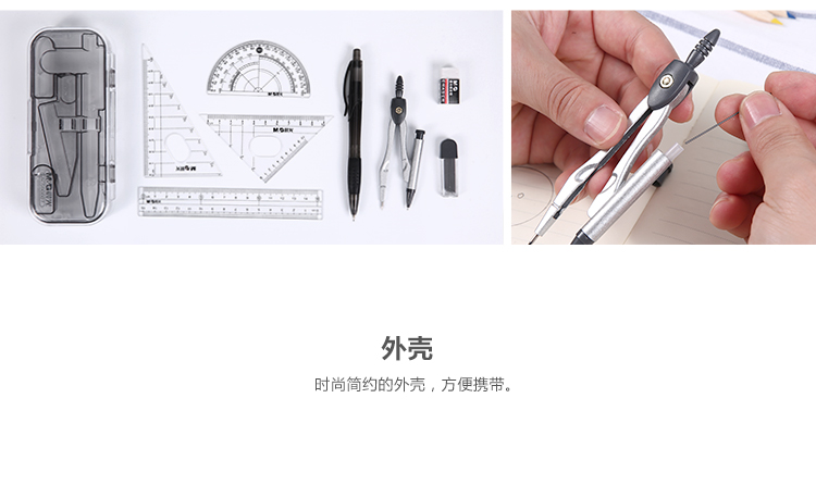 晨光(M&G)ACS90807考试圆规直尺三角尺子量角器绘图组合套装8件套