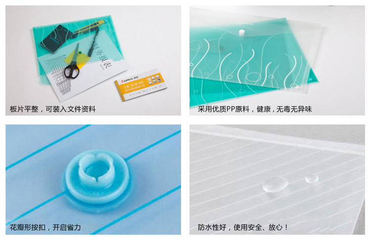 齐心(Comix) 10个装 A4时尚透明按扣袋/文件袋/公文袋 A1707 透明 办公文具