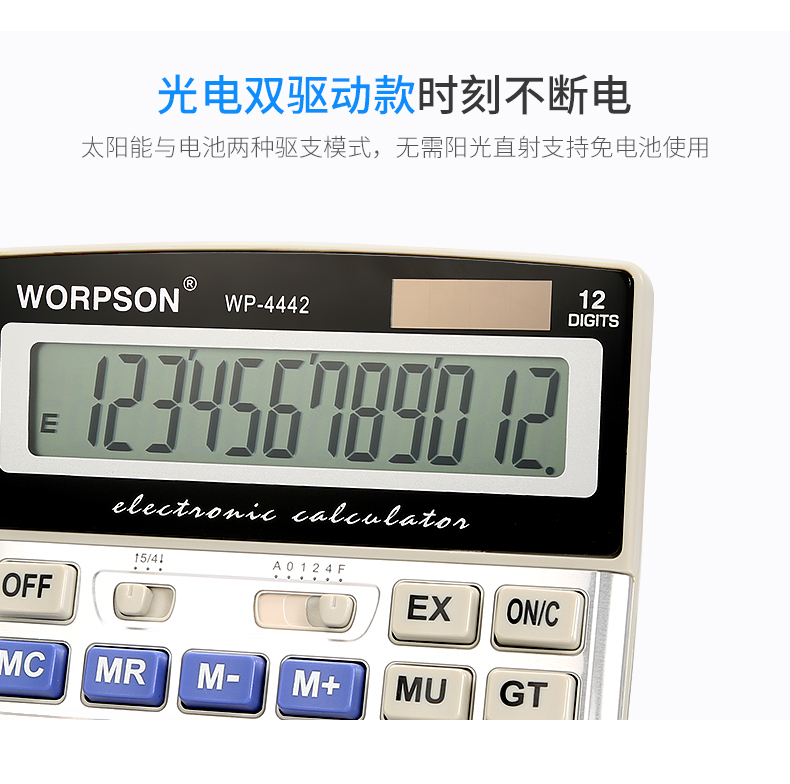 华杰 专业计算办公文具办公用品学生文具双电源电脑按键宽屏商务办公桌面12位数电子计算器通用财务计算机 WP-1115语音款