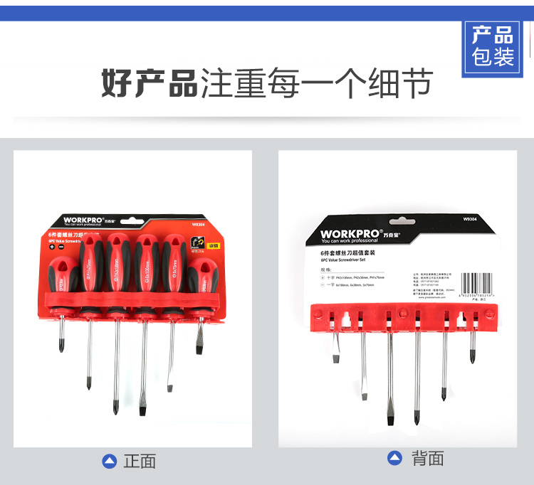 万克宝(WORKPRO)W9304 优质碳钢带磁性螺丝刀套装 十字一字起子 五金工具螺丝批改锥