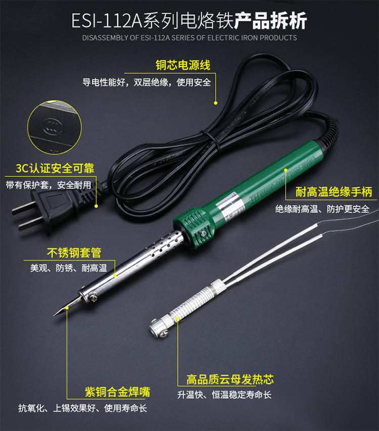 伊莱科 (ELECALL)电烙铁套装60W 含松香焊锡丝烙铁架高温海绵学生电子维修工具组套 ESI-112A