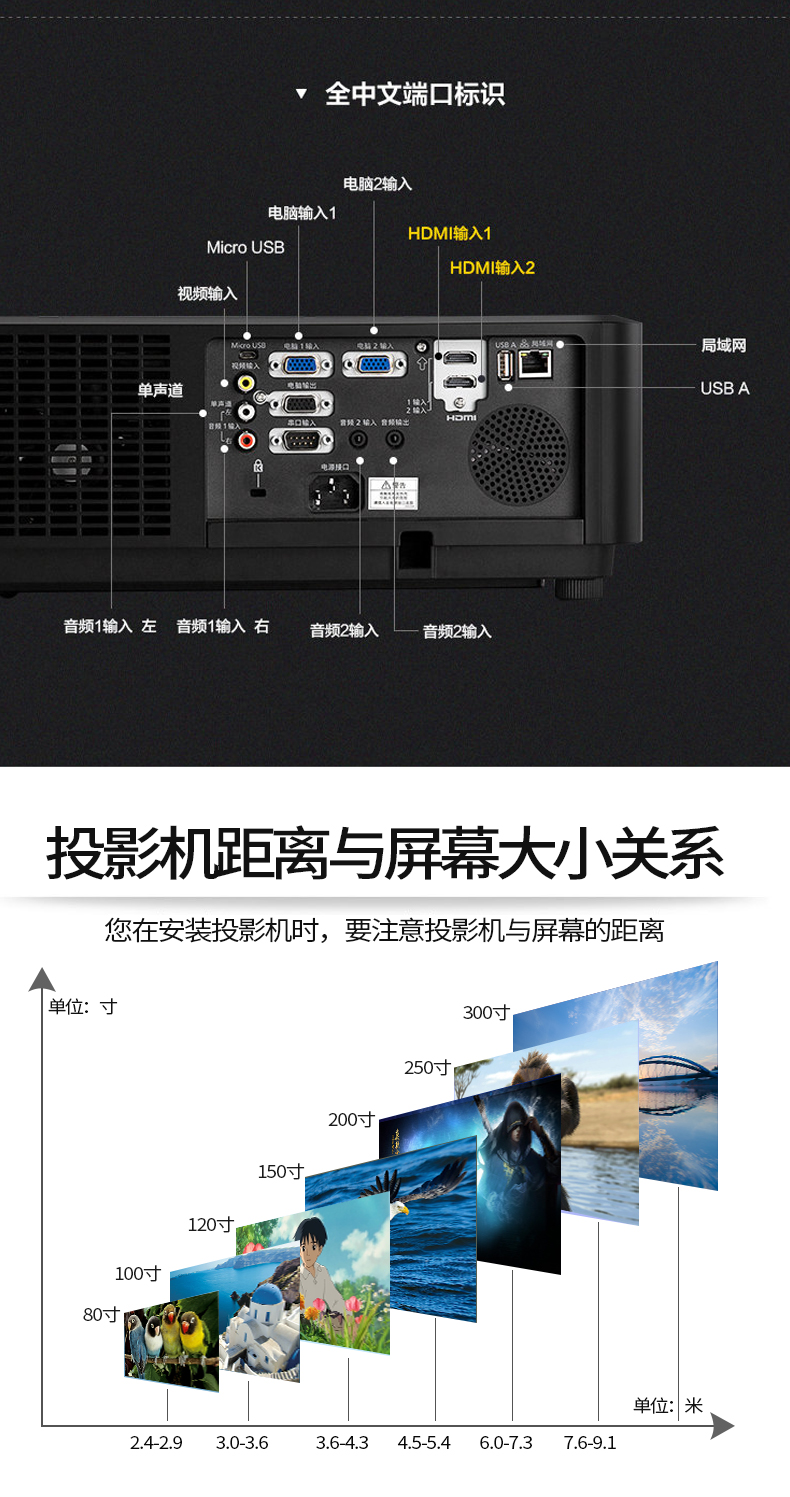 | 投影镜头 | 投射比:1.1-1.8:1 |