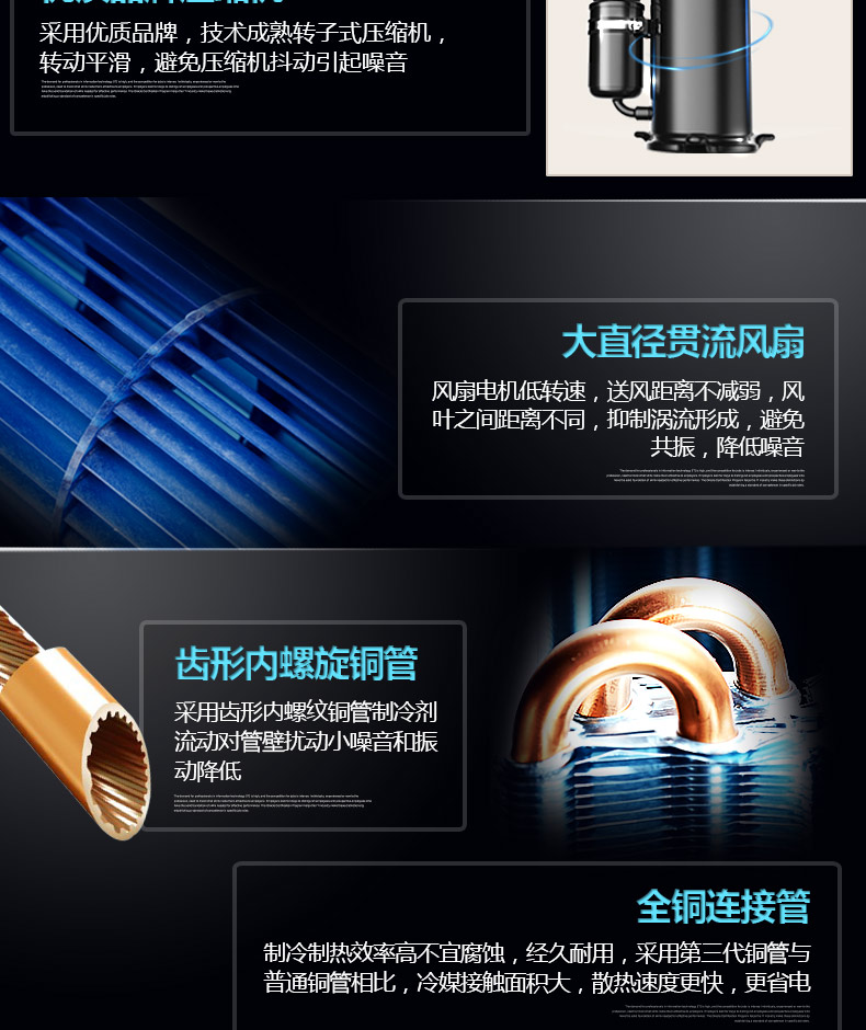 | 包装清单 | 室内机组x1、使用安装说明书x1、7#电池x2、遥控器x1、排水管x1、保修卡x1、室外机组x1、铜连接管(大管)x1、铜连接管(小管)x1、穿墙护圈x1、密封胶泥x1、塑料扎带x1 |