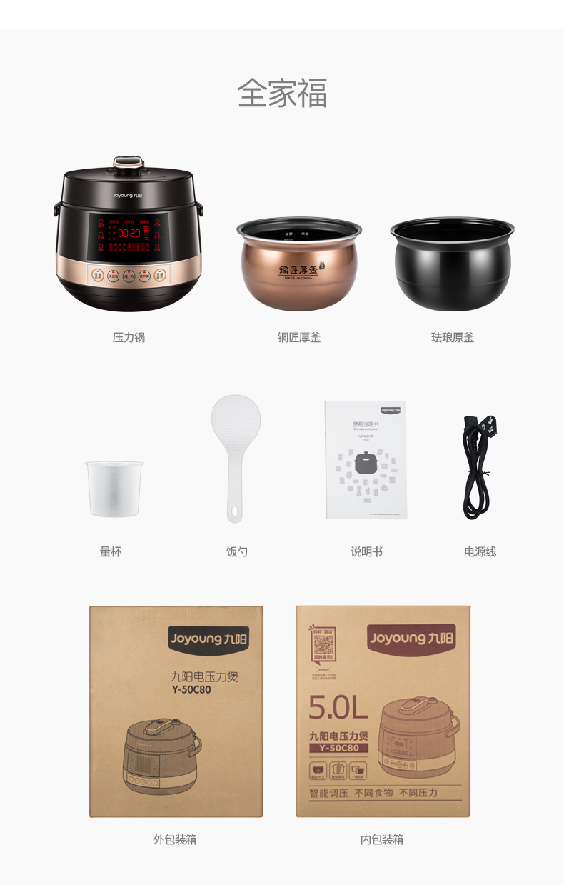 | 商品名称 | Joyoung/九阳 Y-50C80电压力锅智能5L电高压锅双胆家用饭煲正品 |