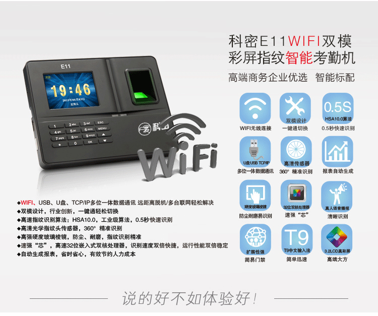 | 其它特性 | 免软件和软件双模,wifi通讯,支持门禁 |