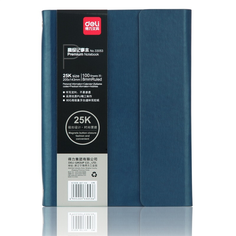 得力(deli)25K/100页蓝宝石系列活页皮面本记事本笔记本子 碳灰蓝33053