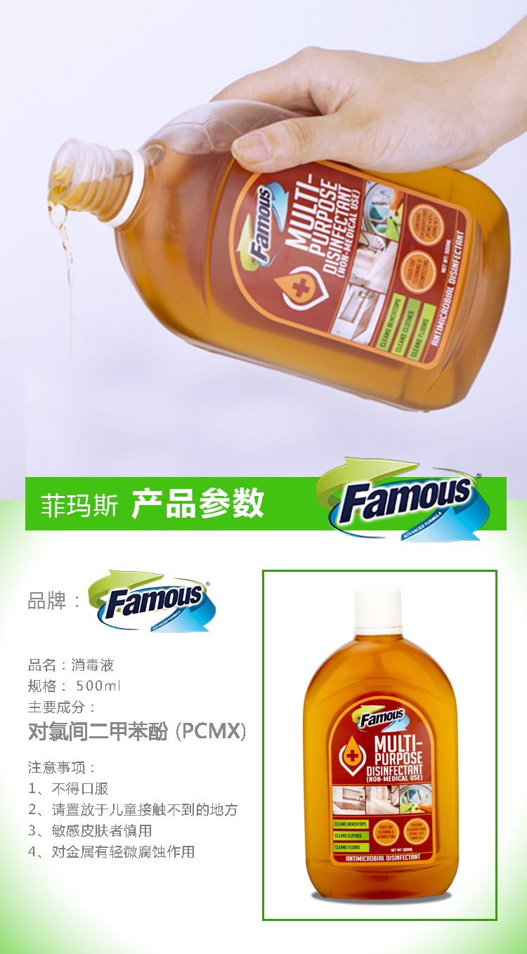 FAMOUS/菲玛斯500ml消毒液地板衣物玩具宠物消毒 500ml*1