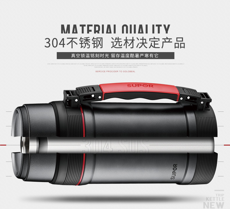 苏泊尔(SUPOR) 保温壶不锈钢真空保温杯男户外旅行家用大容量暖水瓶车载旅游水壶 儒雅黑 2L