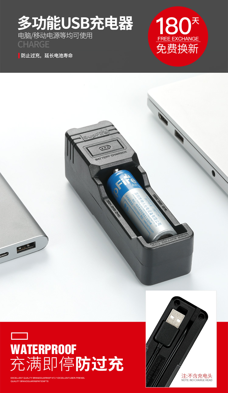神火(supfire)M2 强光手电筒 LED远射型可充电式防水防身家用骑行灯