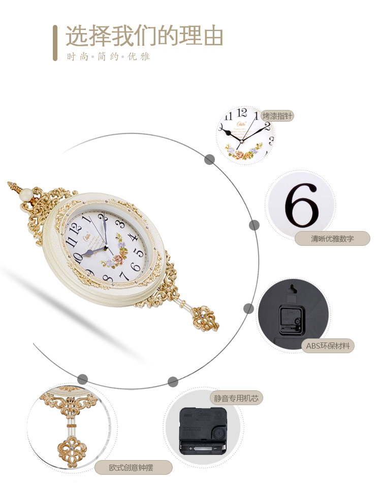 康巴丝(Compas)挂钟欧式田园仿古静音客厅石英钟表摇摆钟创意时尚时钟挂表C2955黄裂纹