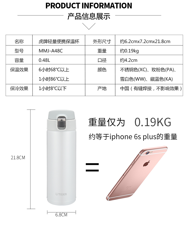虎牌(Tiger)保温杯不锈钢真空杯一键开启弹盖杯MMJ-A48C-KA藏蓝色480ml