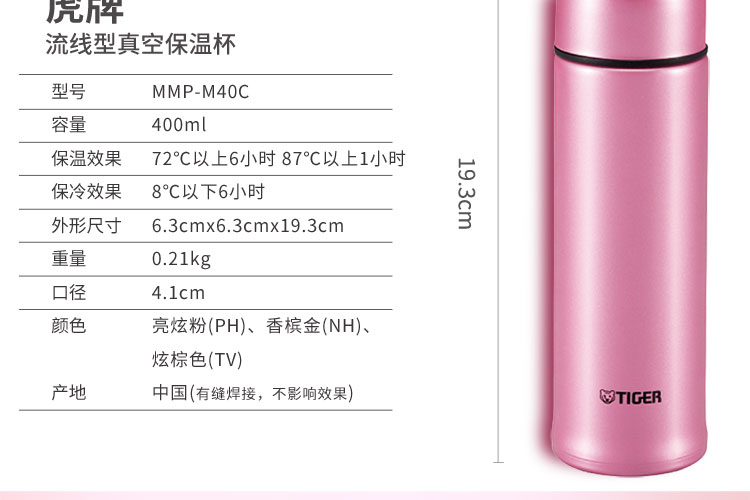 虎牌(Tiger)保温杯轻便真空保冷杯MMP-M40C-TV炫棕色400ml