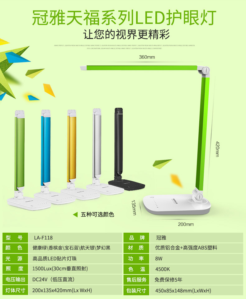 冠雅 LED充电护眼台灯学生学习卧室床头触摸调光办公工作儿童阅读灯 调光调色升级款 金属银