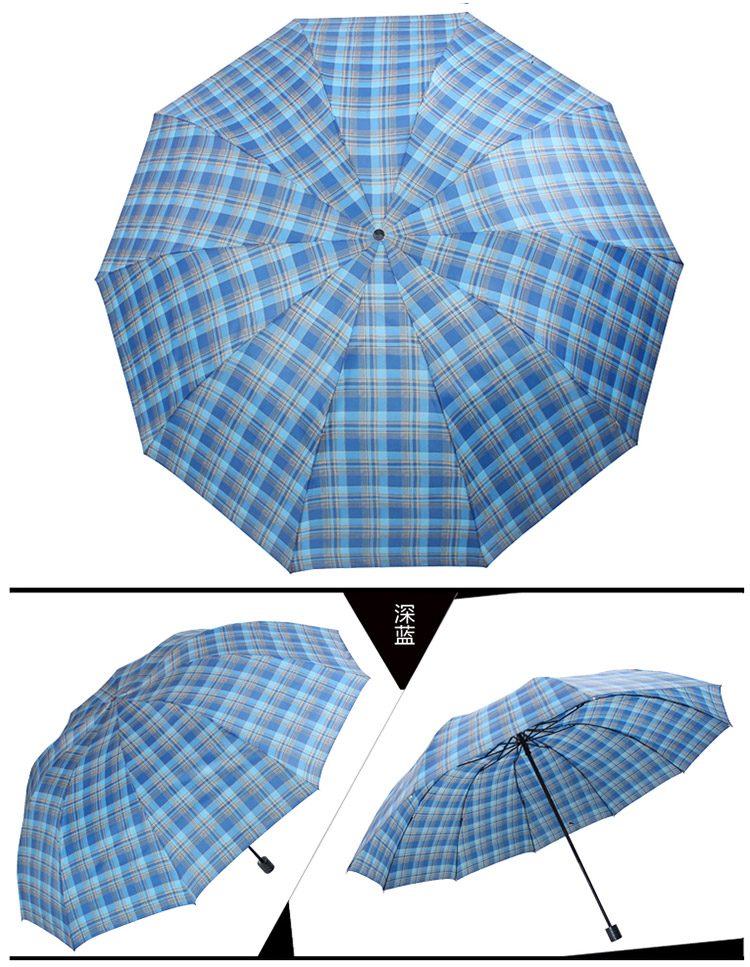 天堂伞 加大加固高密拒水隐格一甩干三折双人商务晴雨伞 深蓝 33213E