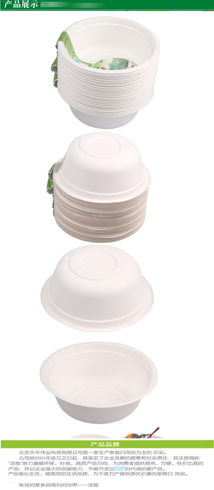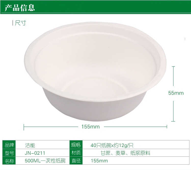 洁能 一次性纸碗 户外野营烧烤可降解防水防油 适用微波炉纸碗 500ML(40只装)JN-0211