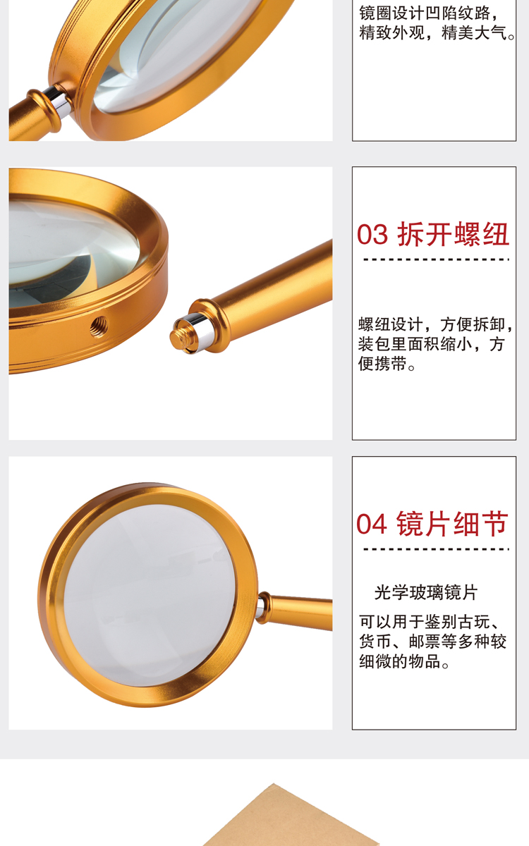 翰朗(HANLANG) 全金属手持10倍高清阅读钟表维修古文玩鉴定放大镜高清光学玻璃镜片