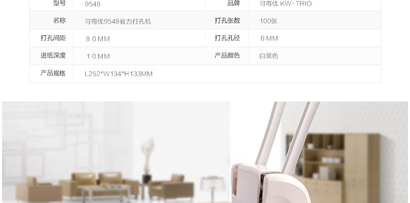 可得优(KW-triO) 9548重型省力打孔机办公大型打孔器刀头易更换可打100页