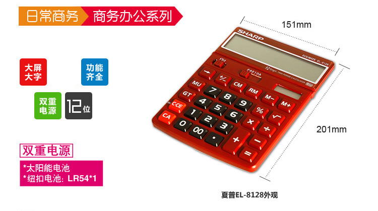 夏普(SHARP) EL-8128-RD 大屏大字大键商务办公计算器 国家专利保护(酒红色)