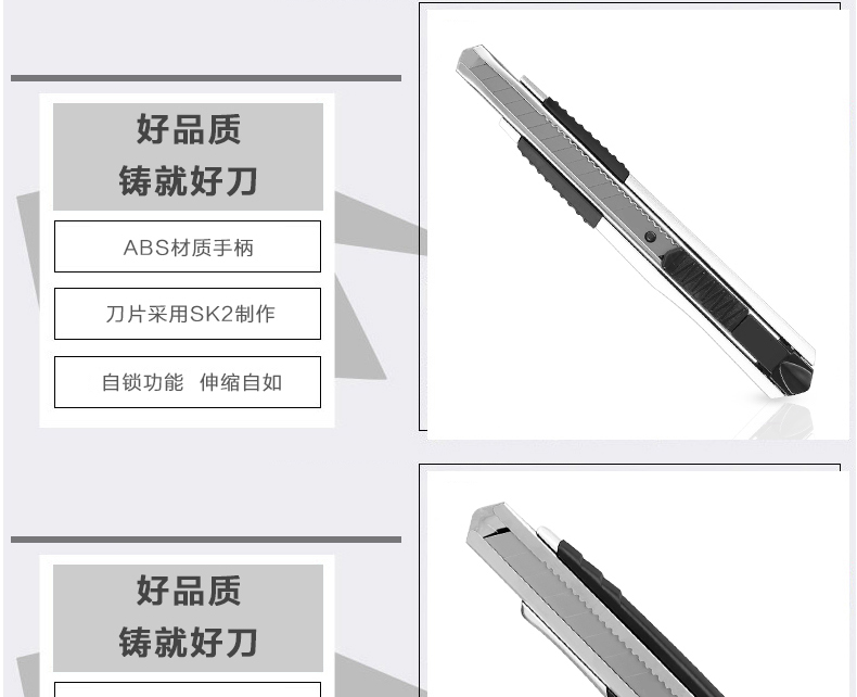 锌合金美工刀 金属手工刀具 不锈钢裁纸刀 墙纸刀 美术刀 1把 银色