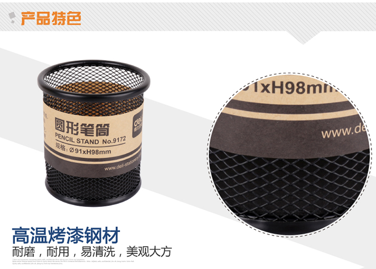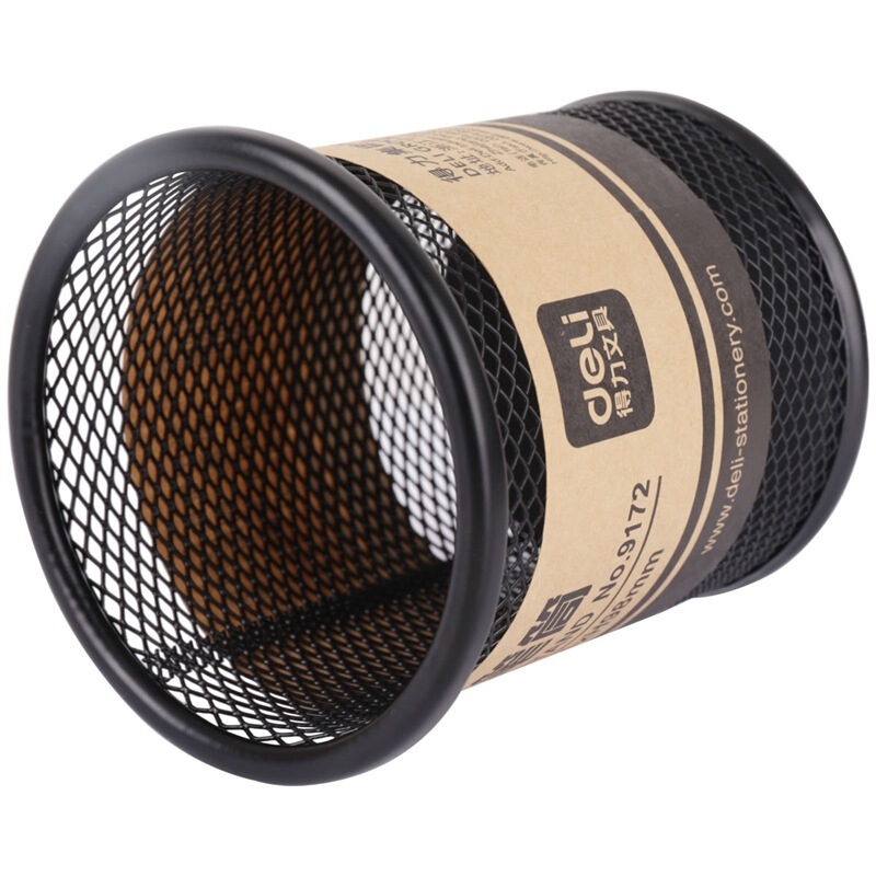 得力(deli)金属网纹圆形笔筒 简约创意桌面收纳 黑色9172