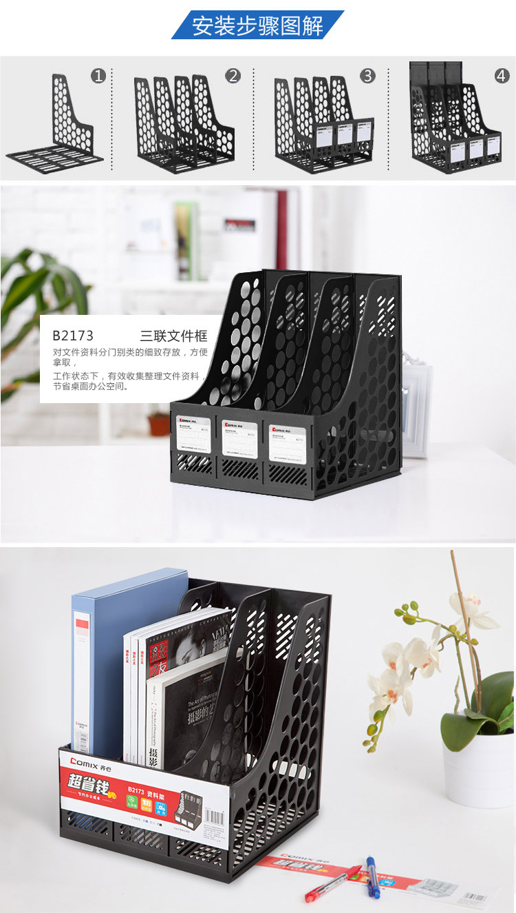 齐心(Comix) B2173稳固型三联文件栏/文件框/文件架 黑色 办公文具