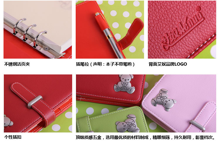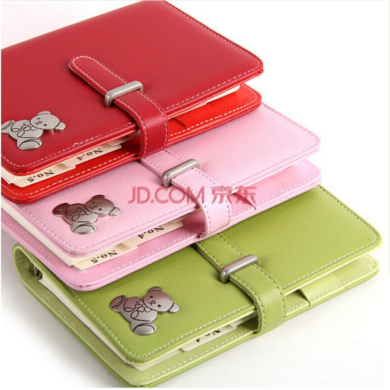 斯图 日韩可爱 小熊 女款 学生记事本 万用手册 清新风笔记本活页日记本子1005 5寸A7-粉色