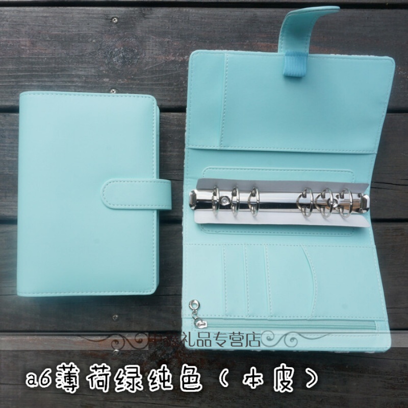 A6活页手账本马卡龙糖果色日程万用手册笔记本文具日记帐本手帐本 薄荷绿(纯色)(本皮,无纸张)