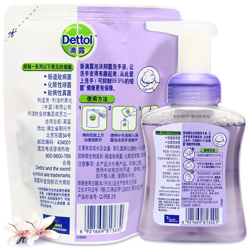 滴露Dettol 泡沫抑菌洗手液 兰花香沁 250ml送225ml补充装
