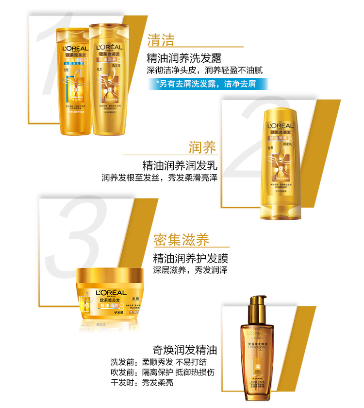 欧莱雅(LOREAL)精油润养洗发水400ml(补水滋润秀发洗发露)(新老包装随机发货)