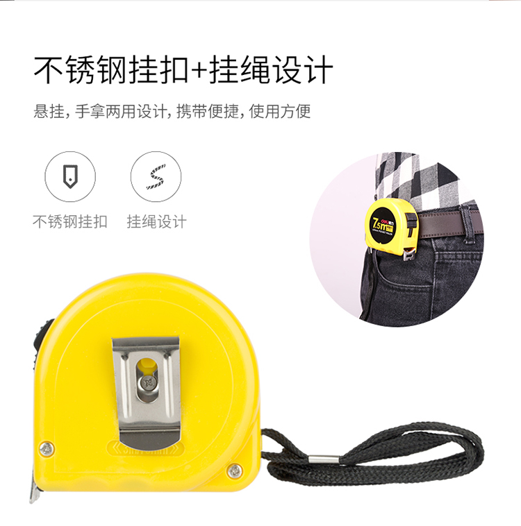 得力(deli)7.5m高精度钢卷尺 木工尺装修测量尺子 带英寸8211
