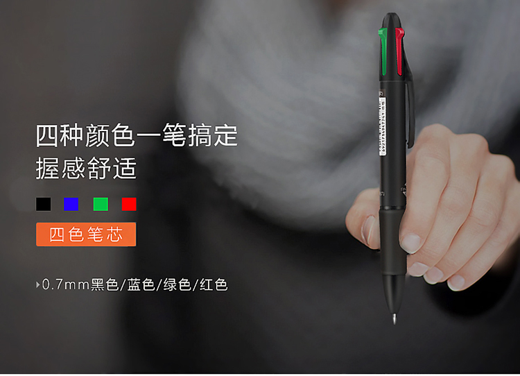 得力(deli)多功能0.7mm四色按动式圆珠笔原子笔油笔 (黑红蓝绿)12支/盒33390