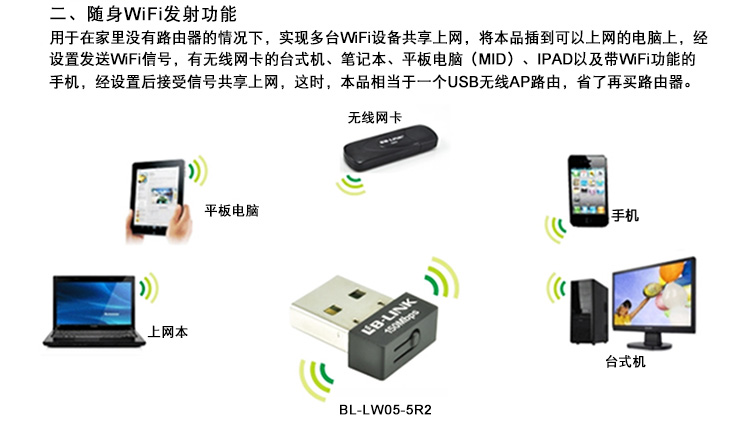 必联(B-LINK)BL-LW05-5R2 150M迷你USB无线网卡 台式机无线接收器 随身WiFi发射器