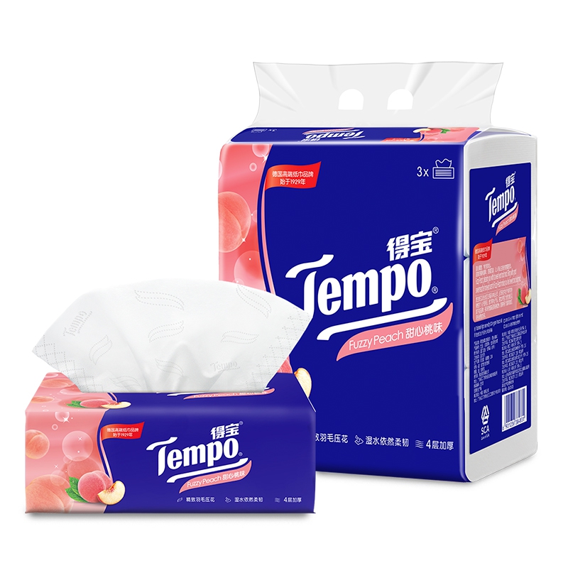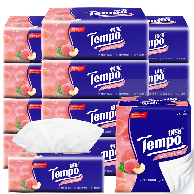 得宝 Tempo软抽 德国品牌纸巾甜心桃味餐巾纸面巾纸 90抽*12包软抽纸