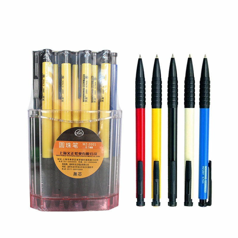 奥博(AOPO) 文正2001按动圆珠笔0.7mm蓝红黑办公学习按动笔40支优惠筒装 蓝色 40支优惠筒装