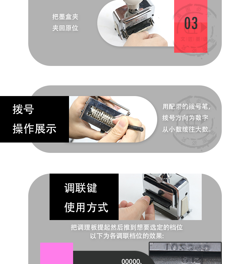 自动号码机手动打码机编号打号器页码机6位日期可调数字印章 财务用品 三昌409(9位)