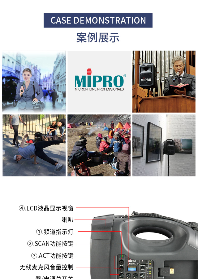 咪宝 MA202B 户外手提便携 无线手提插卡充电式扩音器+1手持话筒1头戴话筒