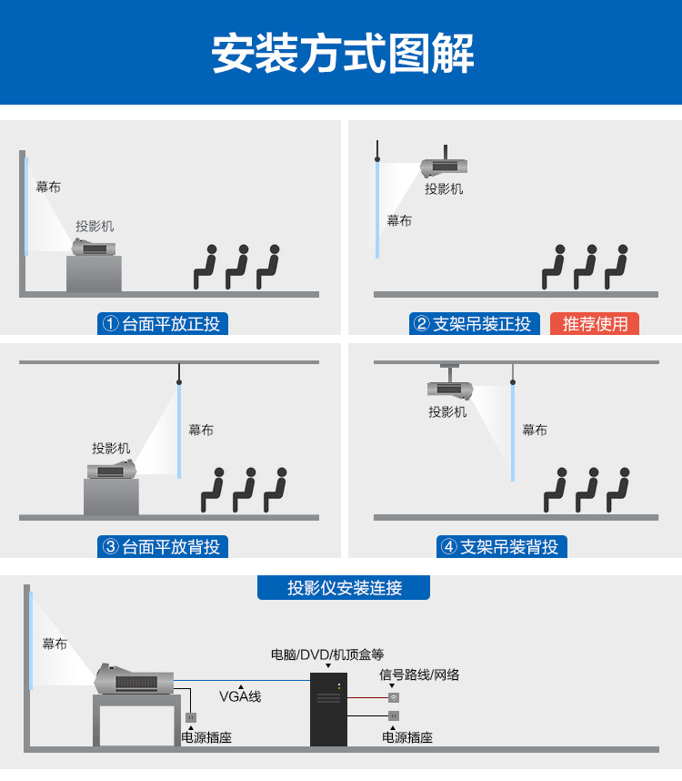 包装清单 投影机x1,无线遥控器单元x1,遥控器电池(R03/LR03/AAA型)x 2,电源线x1,使用说明书(基本指南)x1,电脑连接线(1.5米)x1,软件CD-ROM(使用说明书)x1,保修卡x1