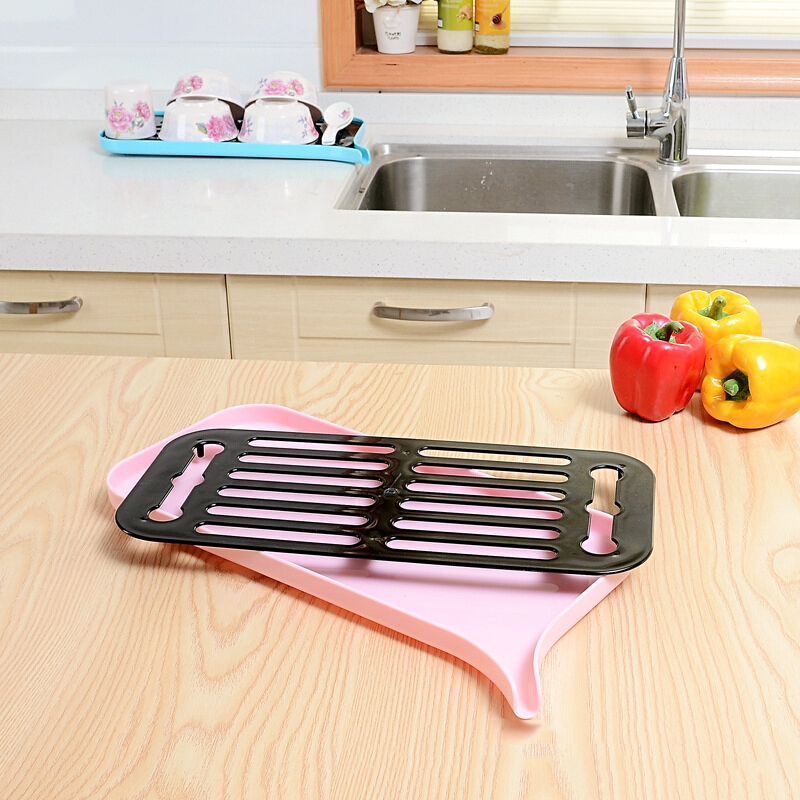 白领公社 沥水托盘 创意加厚长方形塑料双层长方形茶杯水果盘厨房餐具置物架 粉色