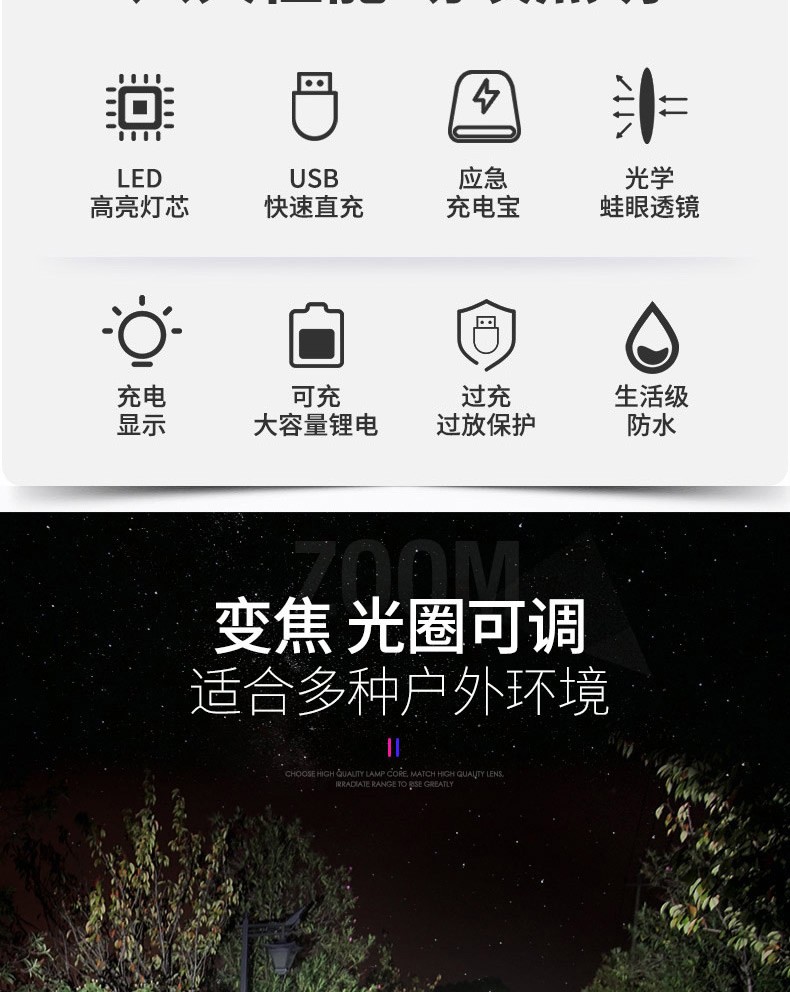 手电筒可充电 强光远射超亮LED多功能家用户外学生小型便携防水COB照明工作灯 USB手机充电宝 USB直充 可供手机充电 远射强光套装