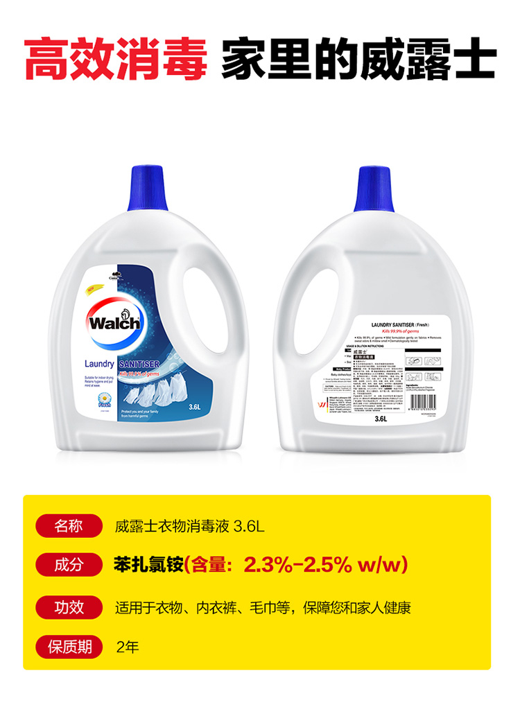 威露士衣物消毒液清新3.6L 杀菌率99.9% 内衣内裤一起洗家用衣物除菌液 杀菌除螨