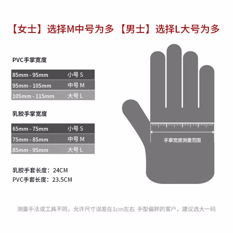 雪尼尔医用一次性手套PVC食品级隔离细菌加厚透明家务手套 PVC透明手套100只/盒L