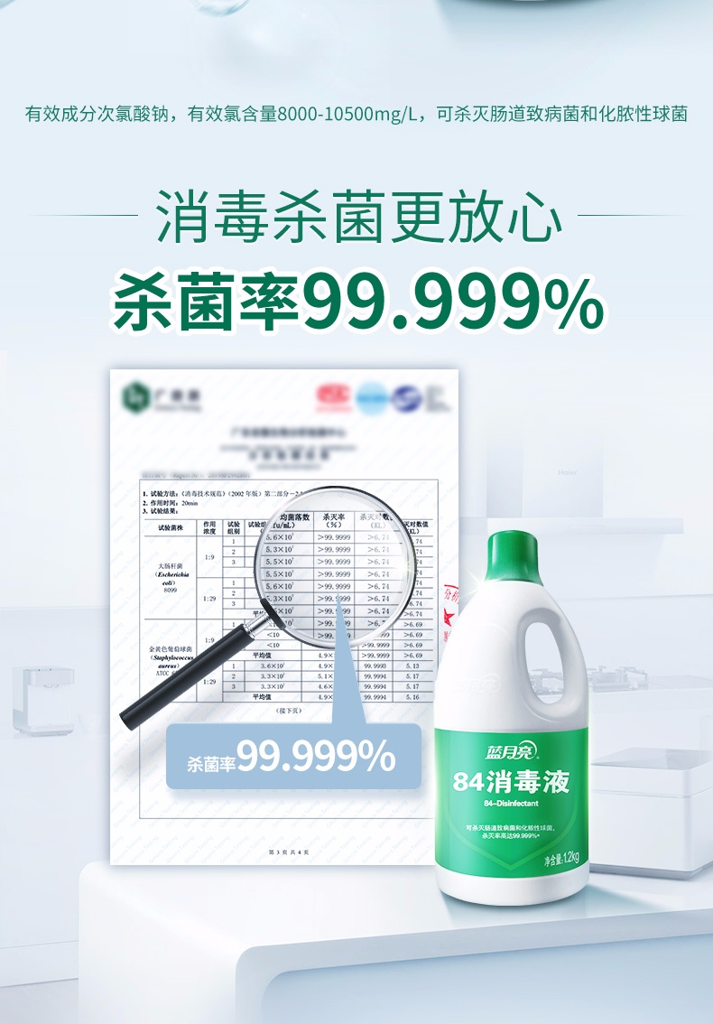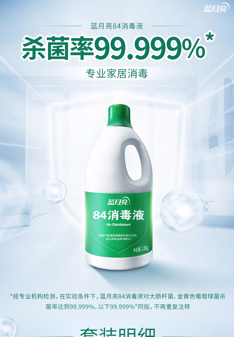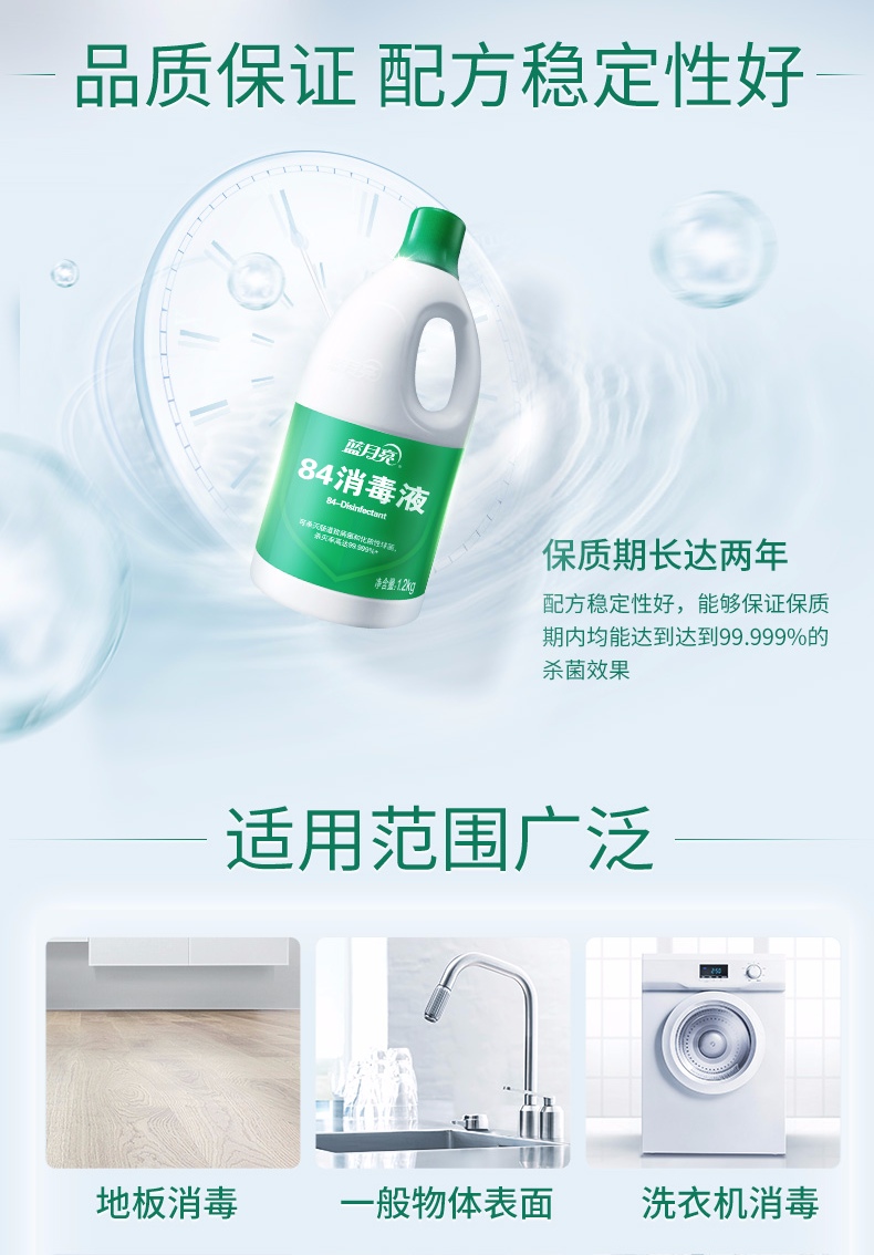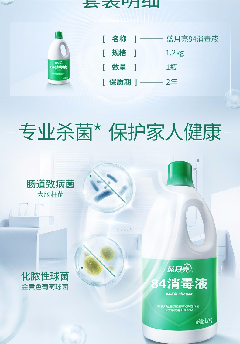 蓝月亮 消毒水 漂白 除菌84消毒液1.2kg/瓶 杀菌率99.999% 清洁下水道