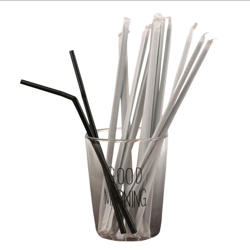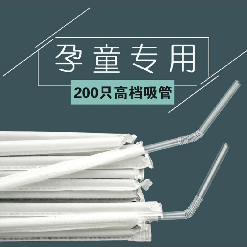 一次性吸管独立纸包装果汁奶茶饮料弯头塑料吸管孕妇儿童产妇喝水喝汤200只 透明