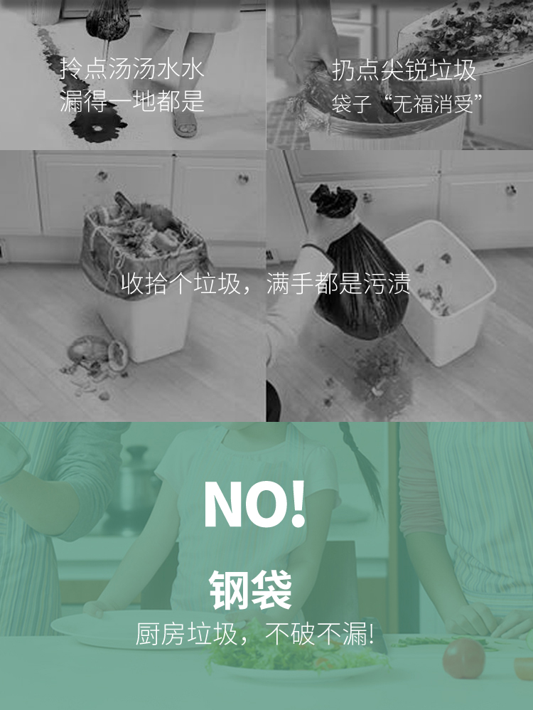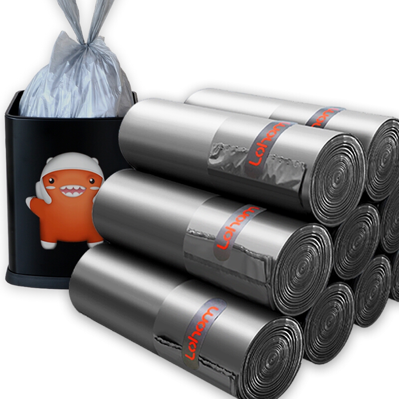 啦哄钢袋背心分类垃圾袋家用加厚手提式银色中号9卷盒装45*60cm厨房塑料袋